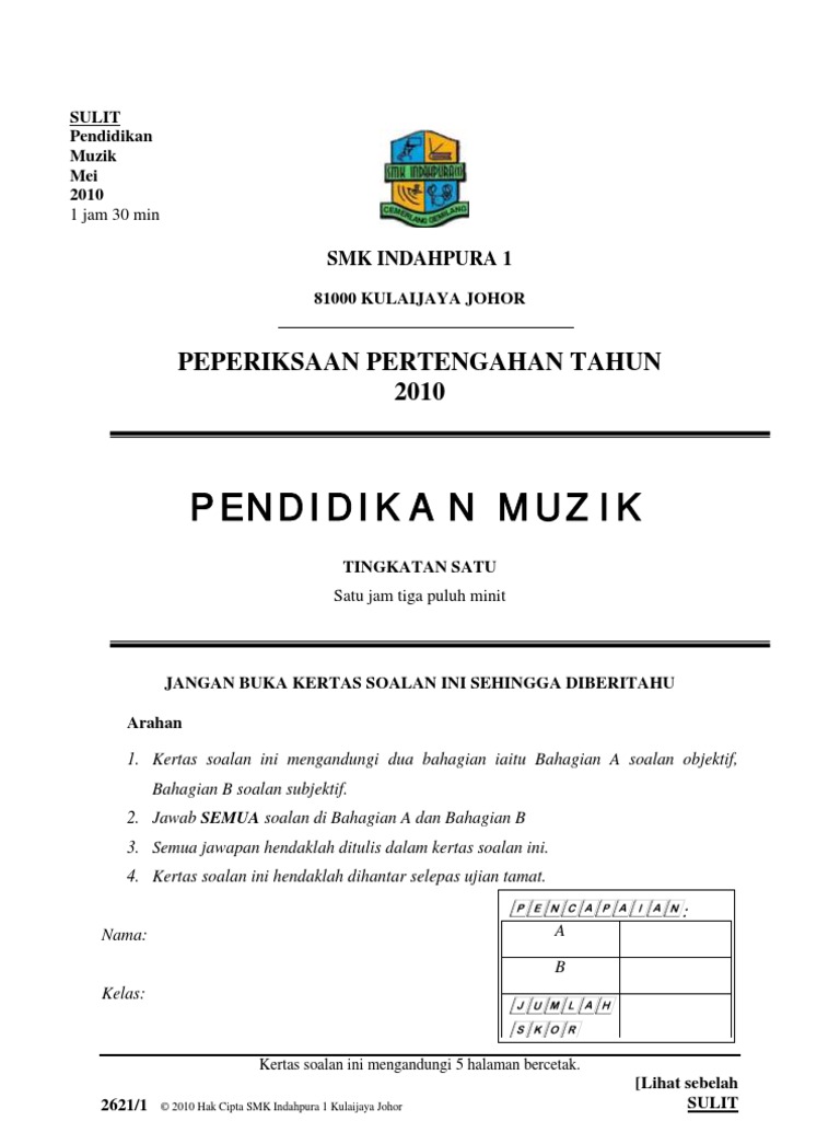 Pendidikan Muzik Tingkatan Satu Pep Pertengahan Tahun 2010 Pdf